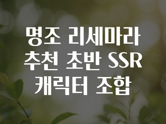 명조(明조)는 화려한 전투 연출과 깊이 있는 스토리, 그리고 전략적인 캐릭터 육성으로 많은 국내외 게이머들의 사랑을 받고 있는 모바일 RPG입니다. ⛩️ 특히 리세마라(한번 시작해도 마음에 드는 SSR 캐릭터를 뽑기 위한 초기 재시도) 단계에서 어떤 SSR 캐릭터를 선택해야 효율적인 진행이 가능한지 고민하시는 분들이 많죠. 🤷♂️🤷♀️
